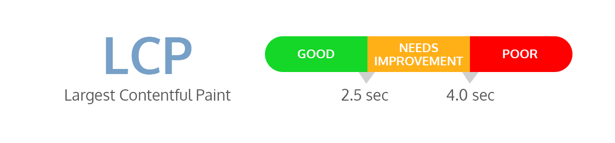 As one of the Core Web Vitals, Largest Contentful Paint (LCP) is a metric used to measure how long it takes for the main content on a web page to completely render on the screen. The metric varies between 2.5 to 4.0 seconds for most websites. Pages that have an LCP of 4 seconds and more are considered to offer a poor user experience.