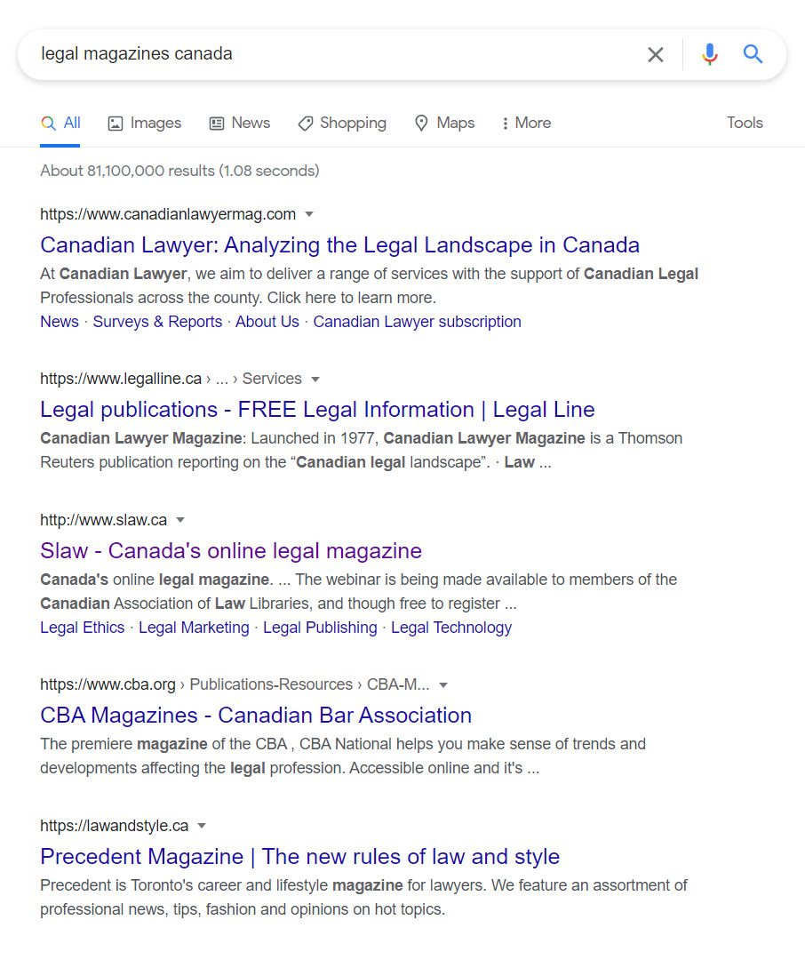 Link building is essential for lawyers, especially from trusted sources such as Lawyers.com, The Lawyers’ Daily, and Canadian Law List. Having content authors mention you in digital spaces outside your own is a form of positive feedback and a vote of confidence.